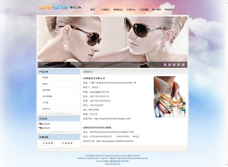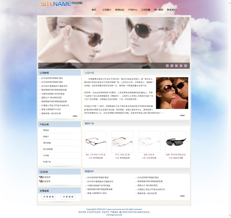 欧美太阳镜各式近视眼镜公司建站模板-建站之星模板