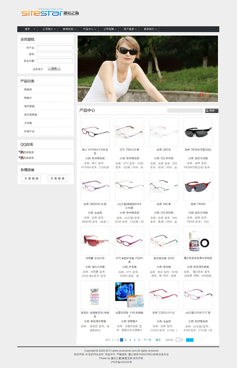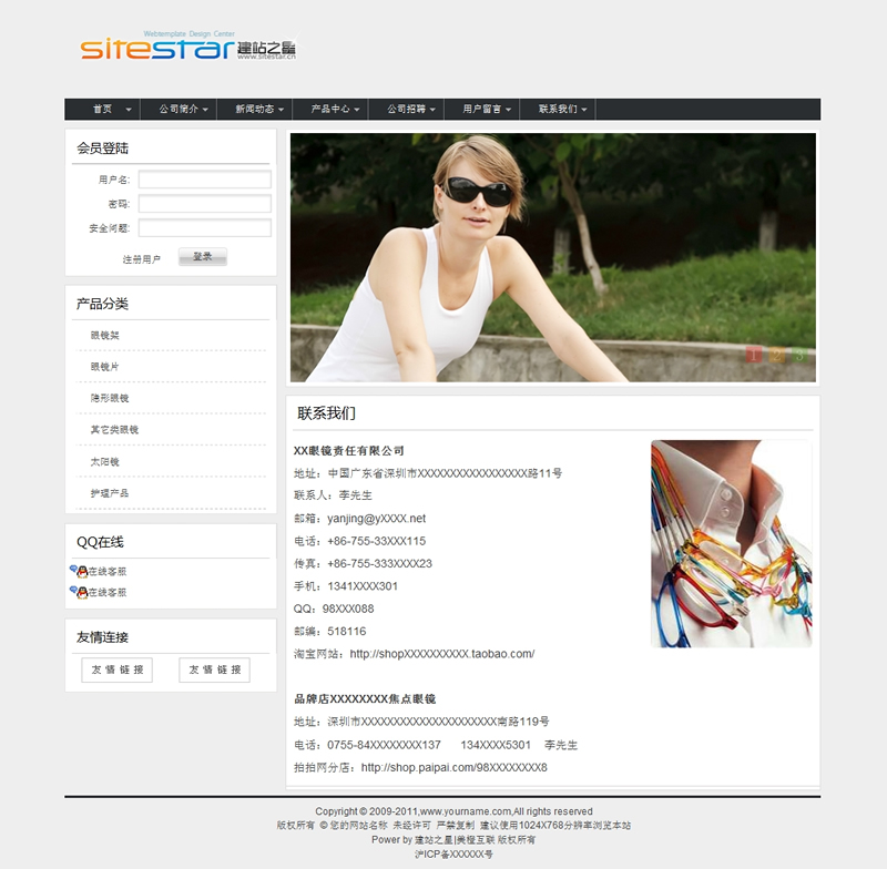 欧美太阳镜各式近视眼镜公司建站模板-建站之星模板