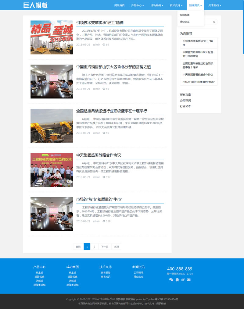 机械工业产品企业通用建站模板-建站之星模板