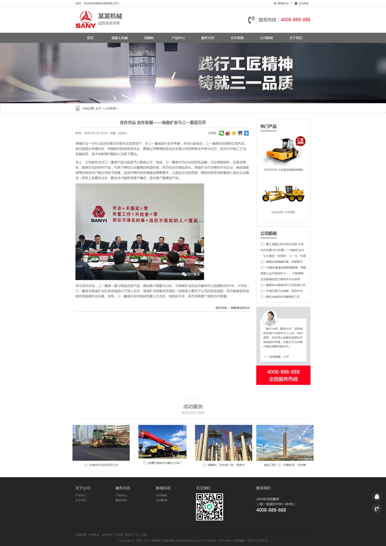 HTML5响应式红灰色重工机械类织梦模板户外大型机械设备网站源码下载-DeDecms(织梦)模板