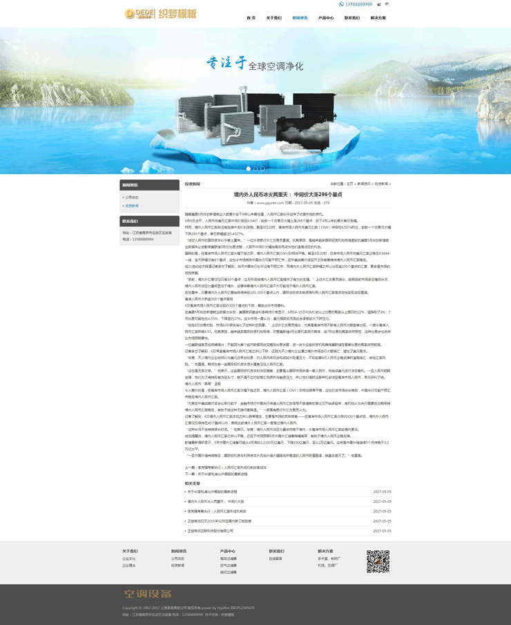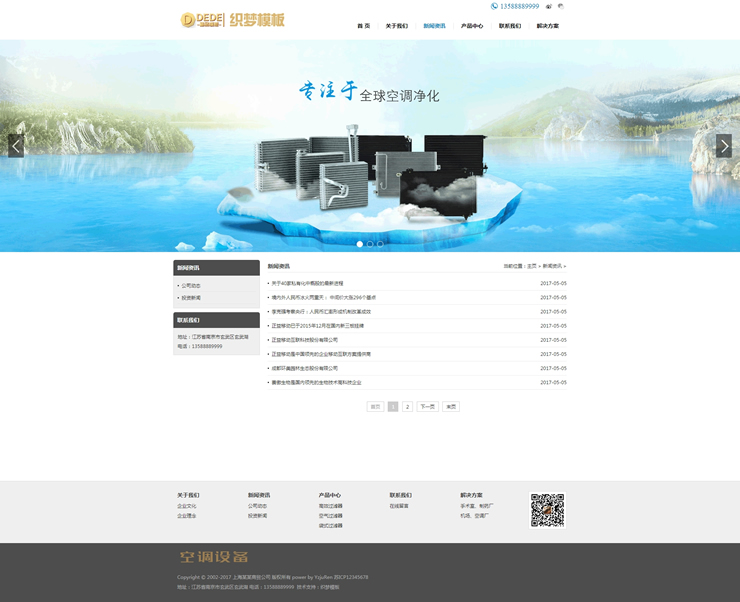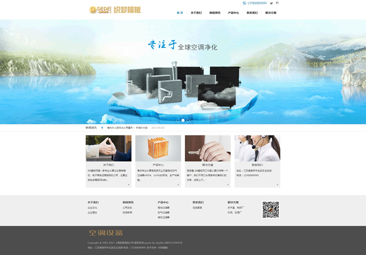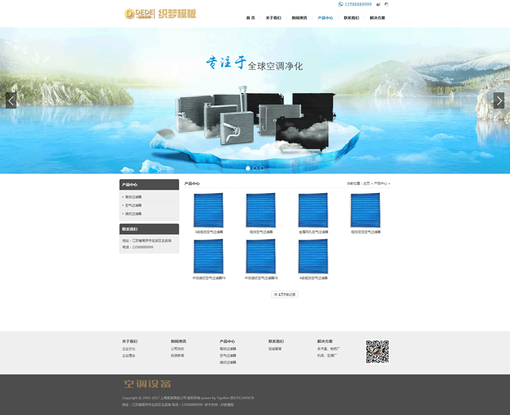 空调空气过滤设备织梦模板空气净化器设备网站-DeDecms(织梦)模板