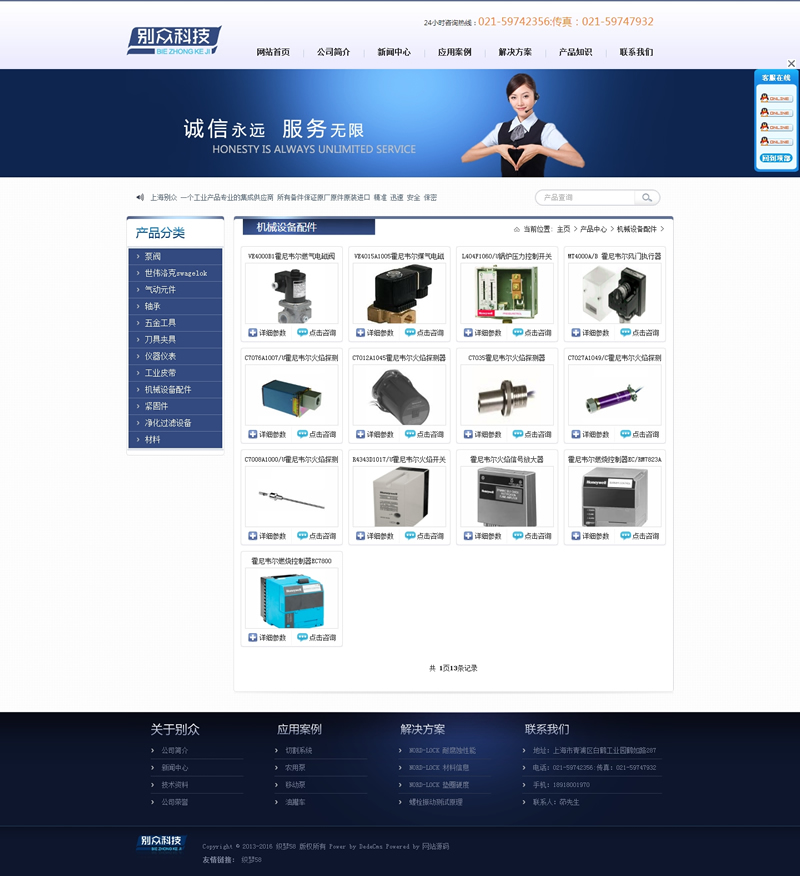 蓝色机械泵阀企业类整站织梦源码-DeDecms(织梦)模板