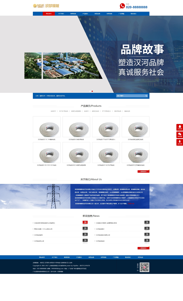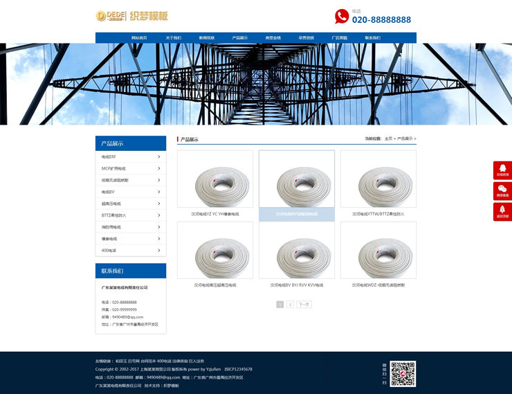 响应式电缆电线类网站织梦模板HTML5基建蓝色通用-DeDecms(织梦)模板