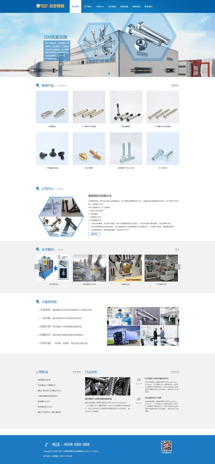 蓝色响应式机械螺丝设备行业网站织梦模板(自-DeDecms(织梦)模板
