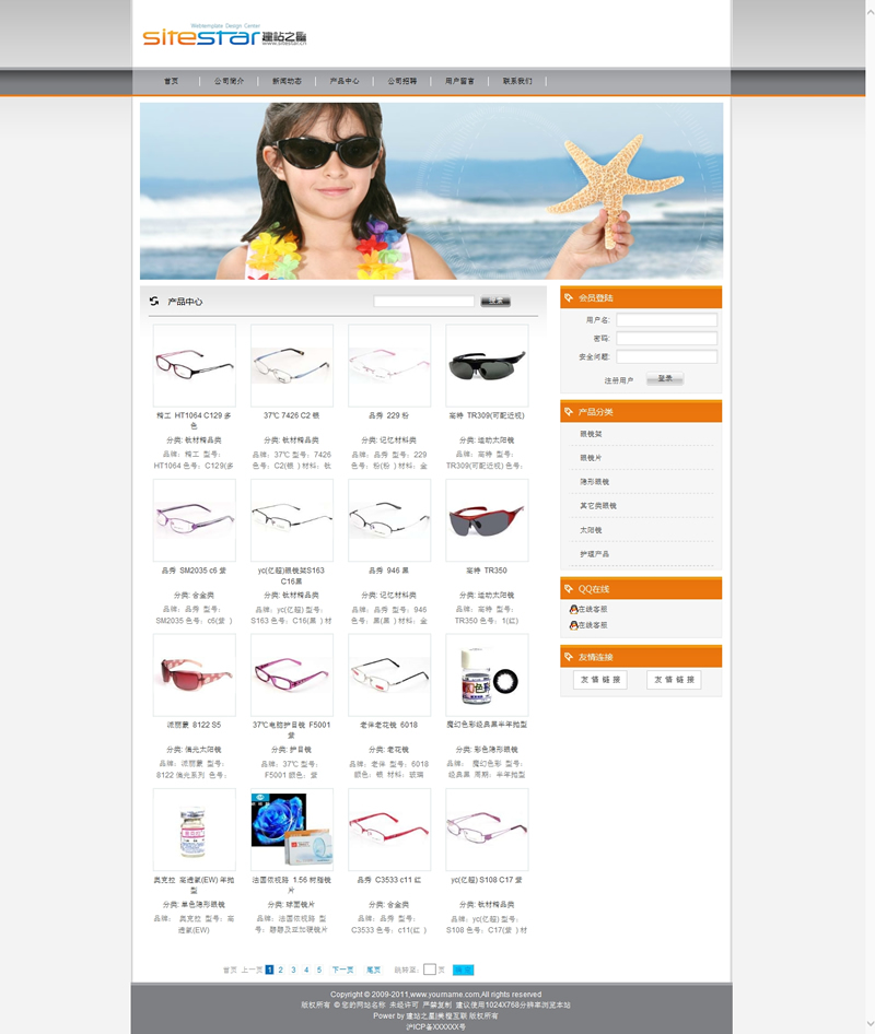 欧美太阳镜各式近视眼镜公司建站模板-建站之星模板