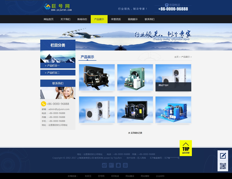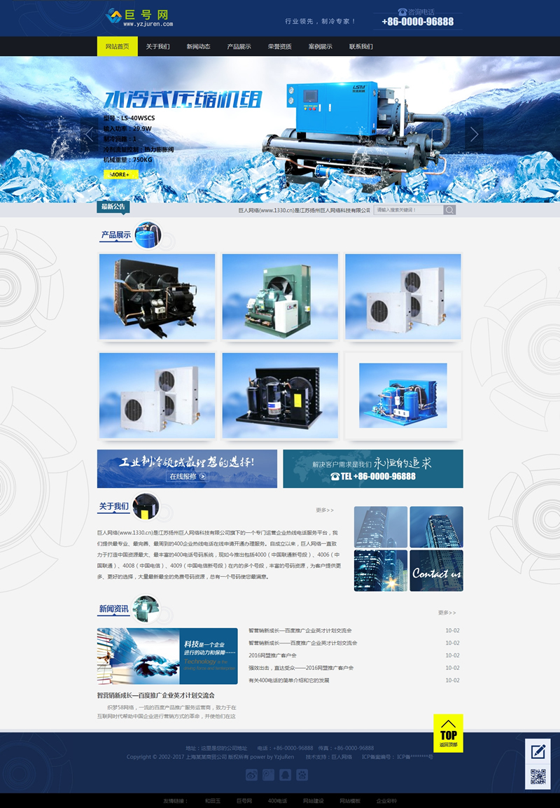 蓝色制冷机械设备织梦模板(带手机端)-DeDecms(织梦)模板
