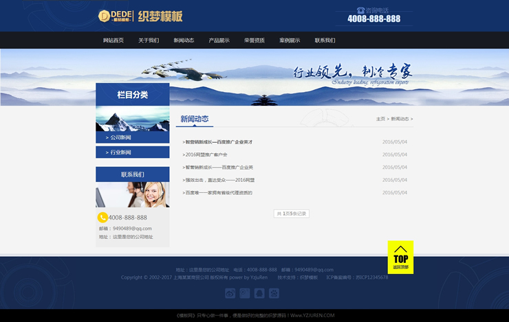 响应式蓝色高端商务公司企业dedecms整站源码(自适-DeDecms(织梦)模板