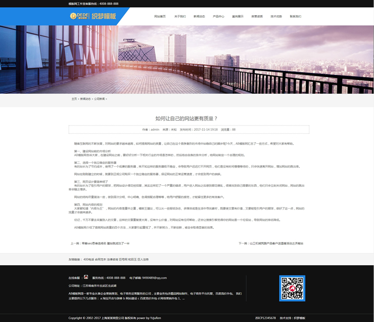 响应式蓝色高端商务公司企业dedecms整站源码(自适-DeDecms(织梦)模板