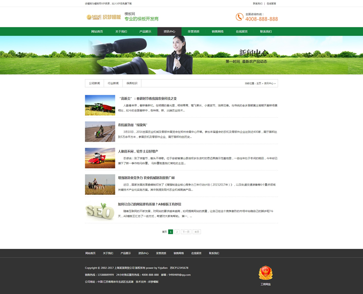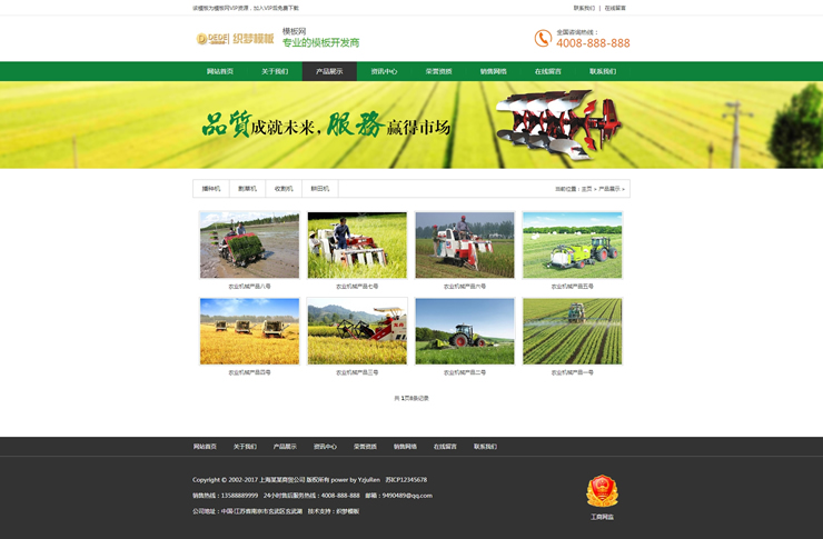 绿色农机产品机械企业网站模板织梦农业企业源-DeDecms(织梦)模板