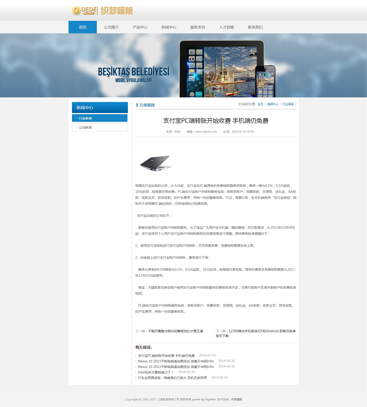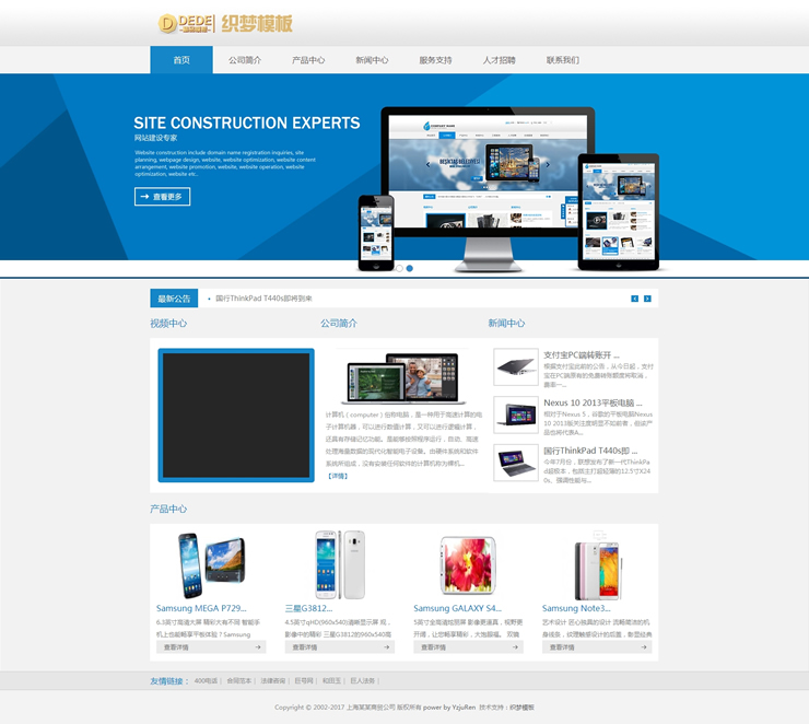 蓝色大气的通信类电子科技企业通用网站织梦模-DeDecms(织梦)模板