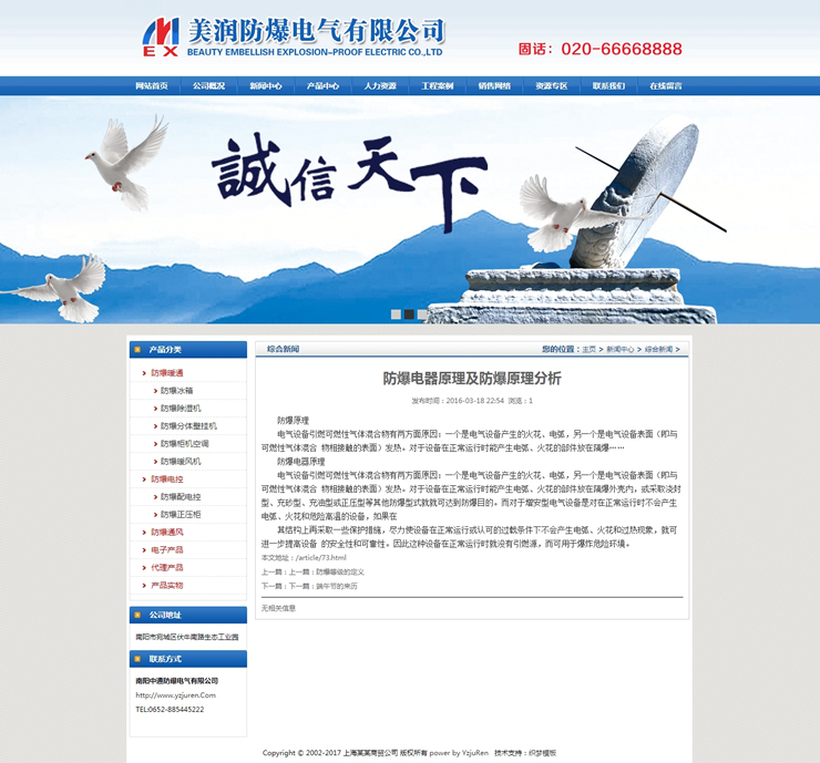 蓝色防爆电子产品企业整站模板-DeDecms(织梦)模板
