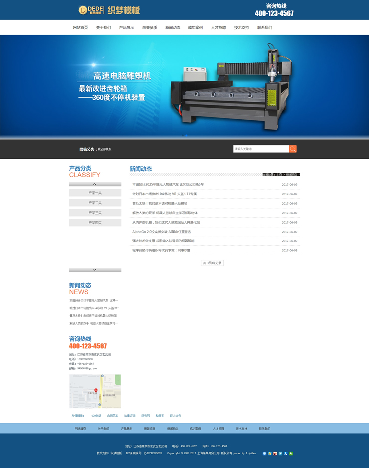 蓝色机械电子设备类公司织梦模板-DeDecms(织梦)模板