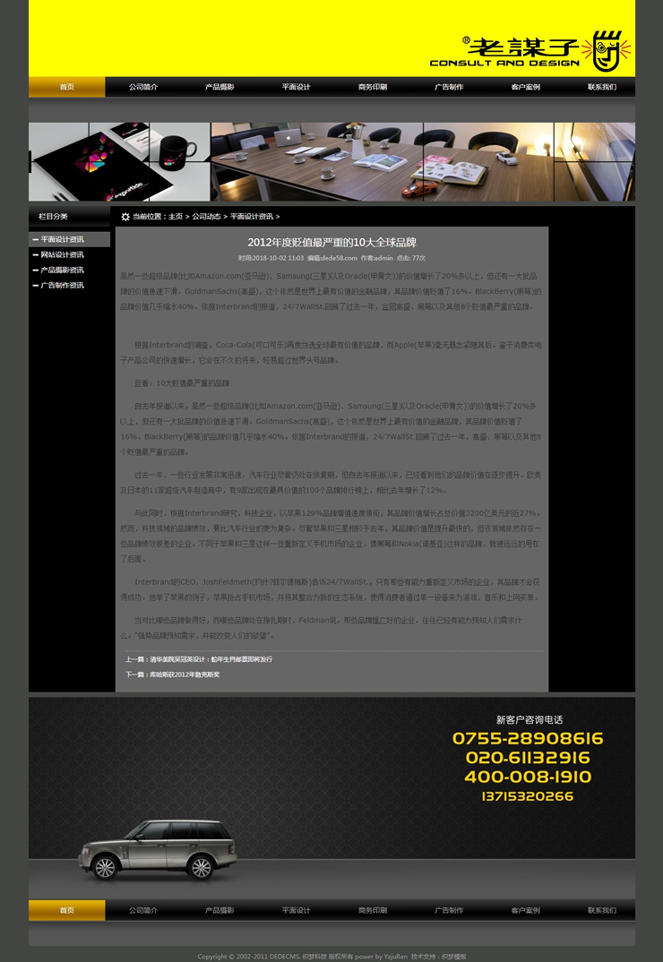 大气广告设计公司源码(仿老谋子)-DeDecms(织梦)模板