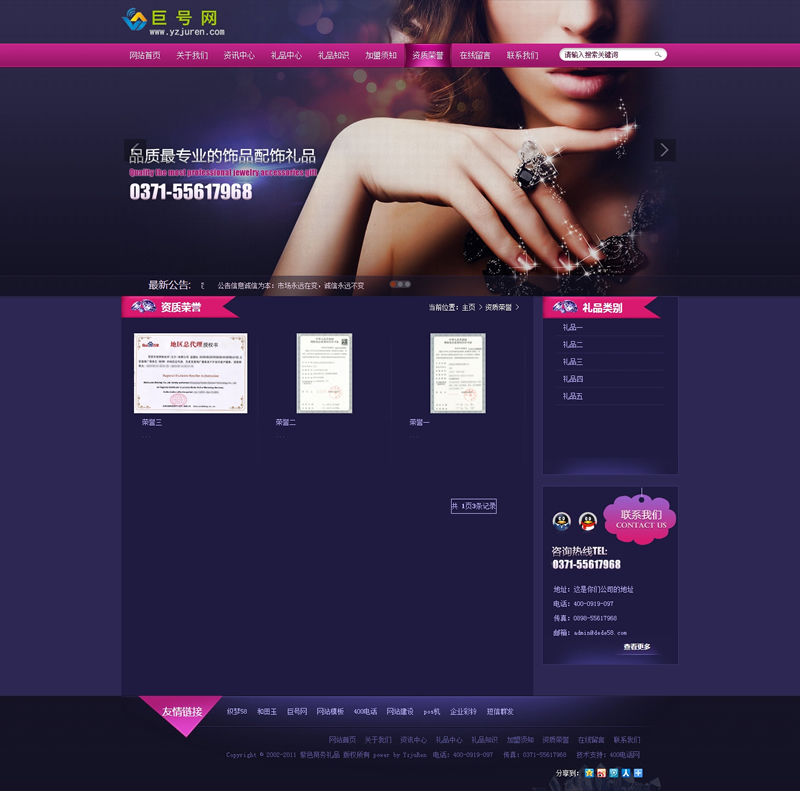 紫色商务礼品销售企业网站织梦模板-DeDecms(织梦)模板