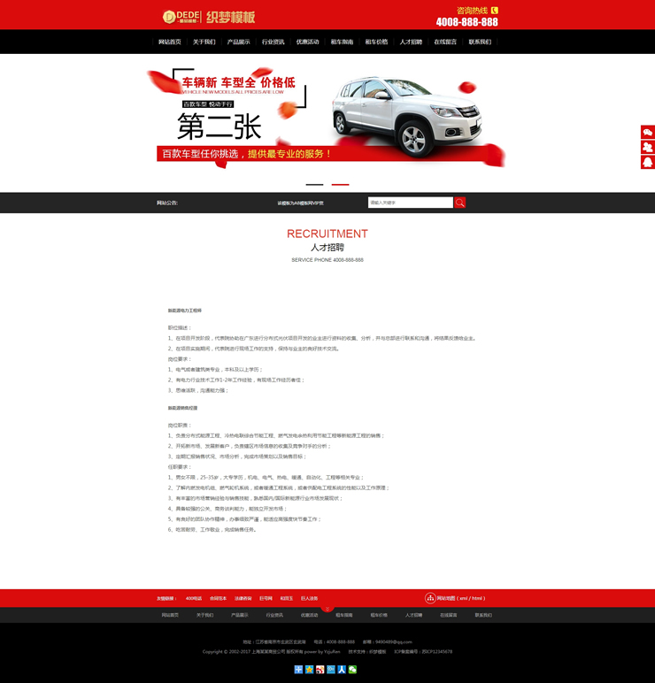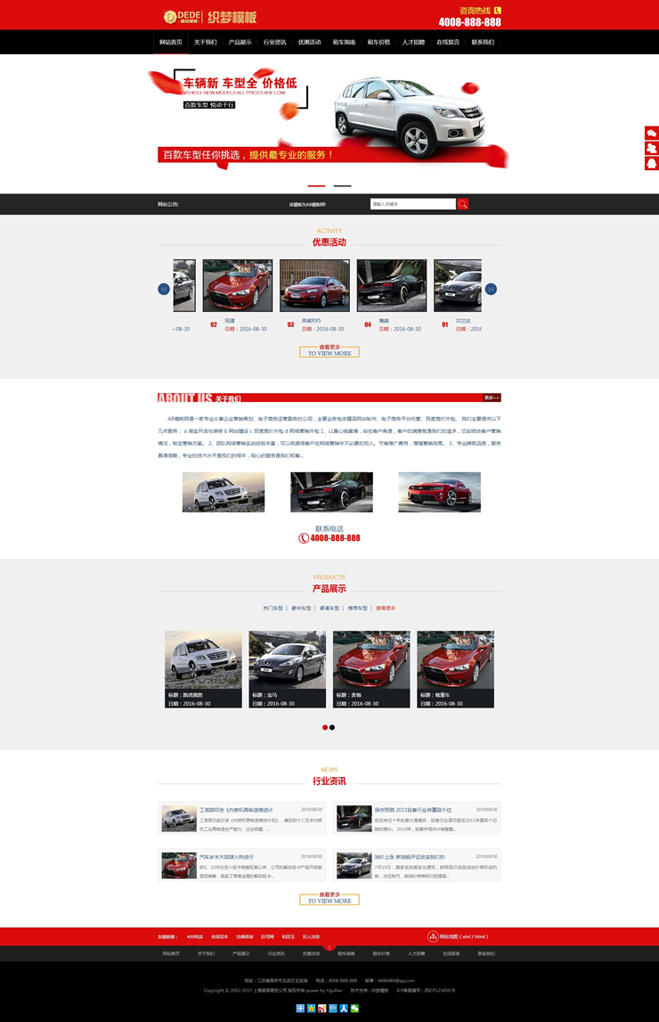 汽车租赁公司网站源码 汽车服务类网站织梦模板-DeDecms(织梦)模板