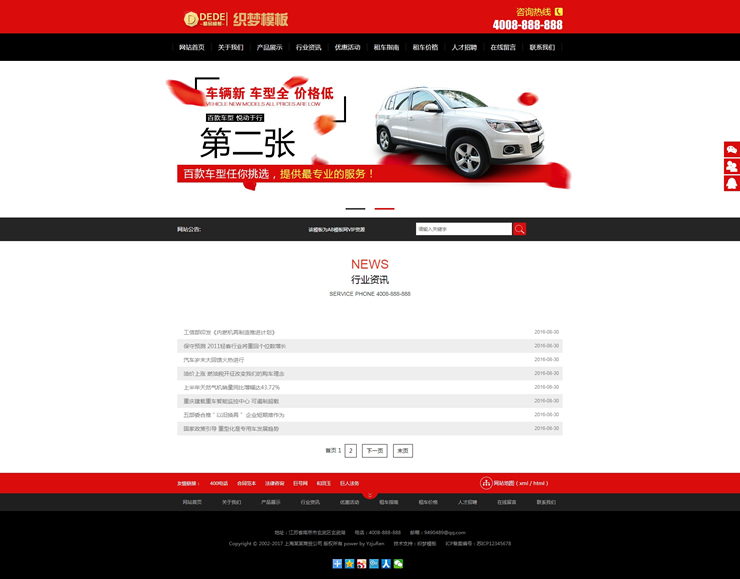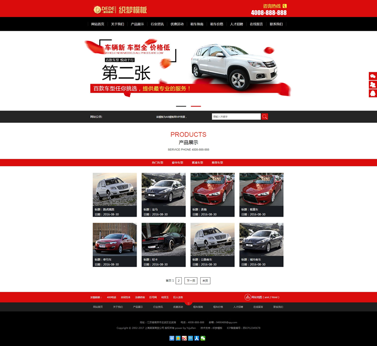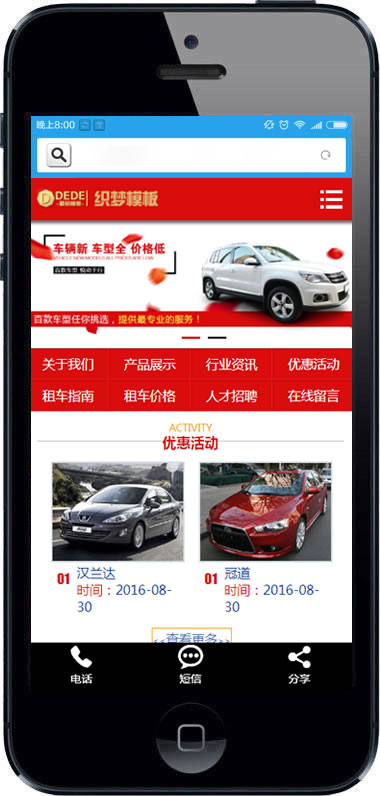 汽车租赁车辆展示类织梦模板(带手机端)-DeDecms(织梦)模板