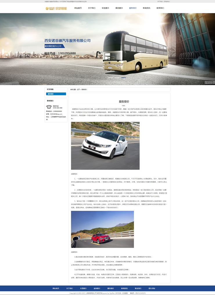 汽车出租公司织梦网站源码汽车租赁服务类平台-DeDecms(织梦)模板
