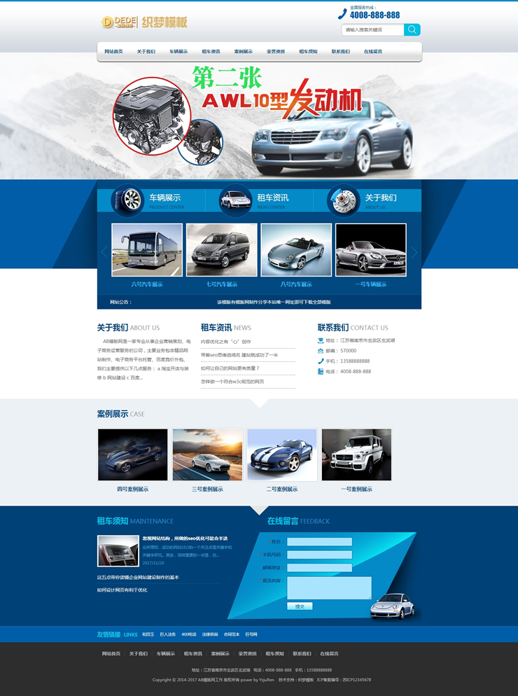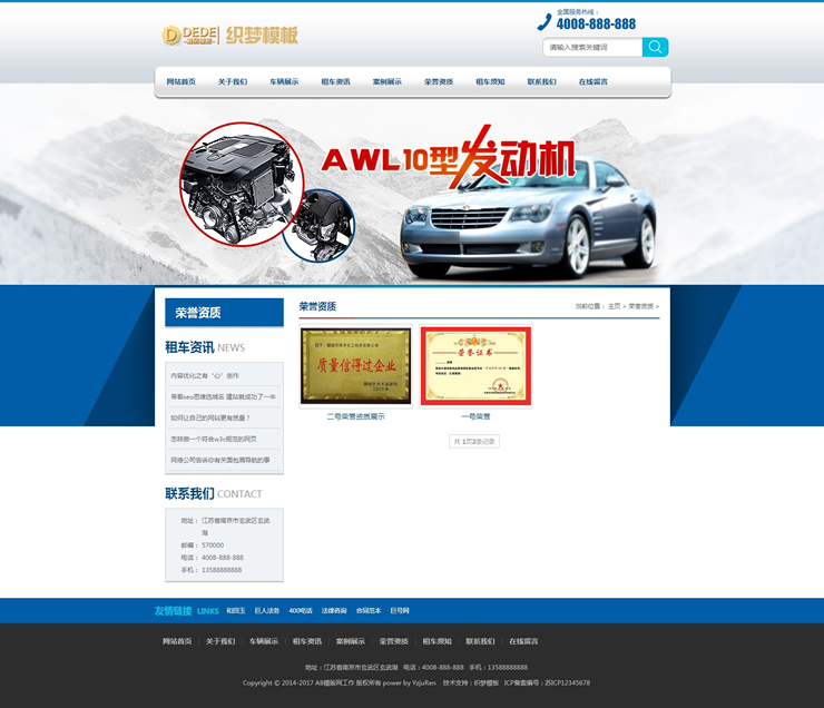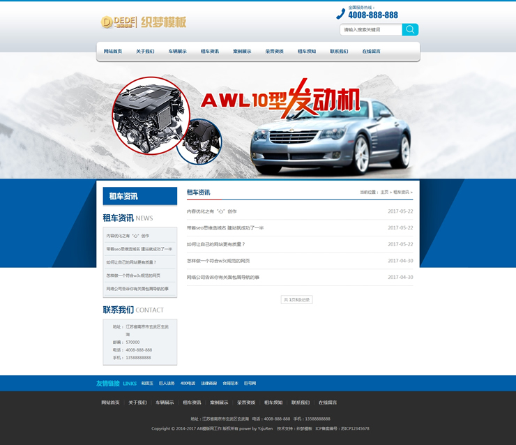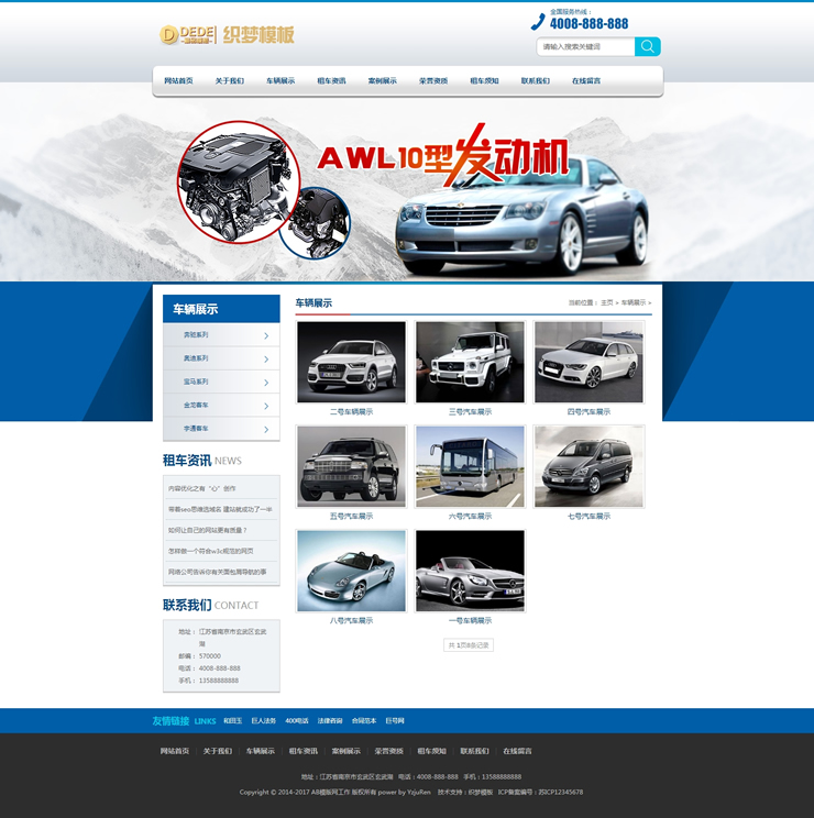 汽车租赁车辆展示类织梦模板(带手机端)-DeDecms(织梦)模板