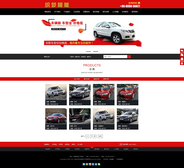 汽车租赁车辆展示类织梦模板(带手机端)-DeDecms(织梦)模板