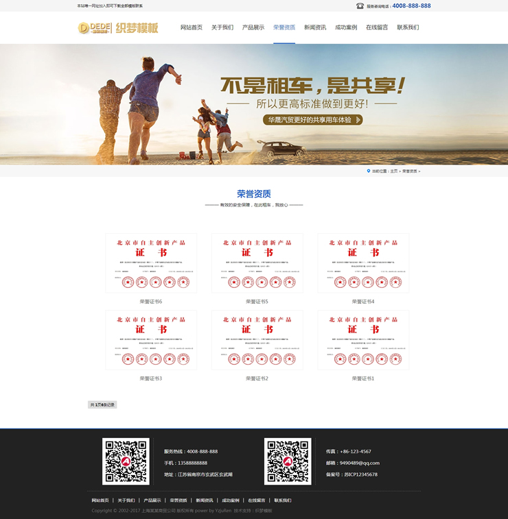 汽车租赁车辆展示类织梦模板(带手机端)-DeDecms(织梦)模板