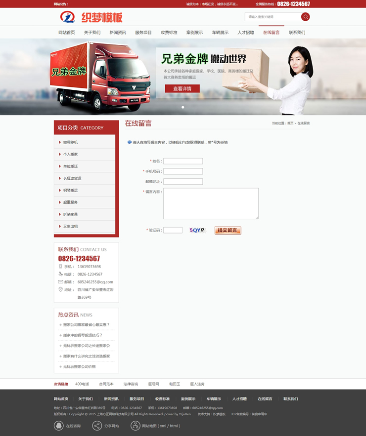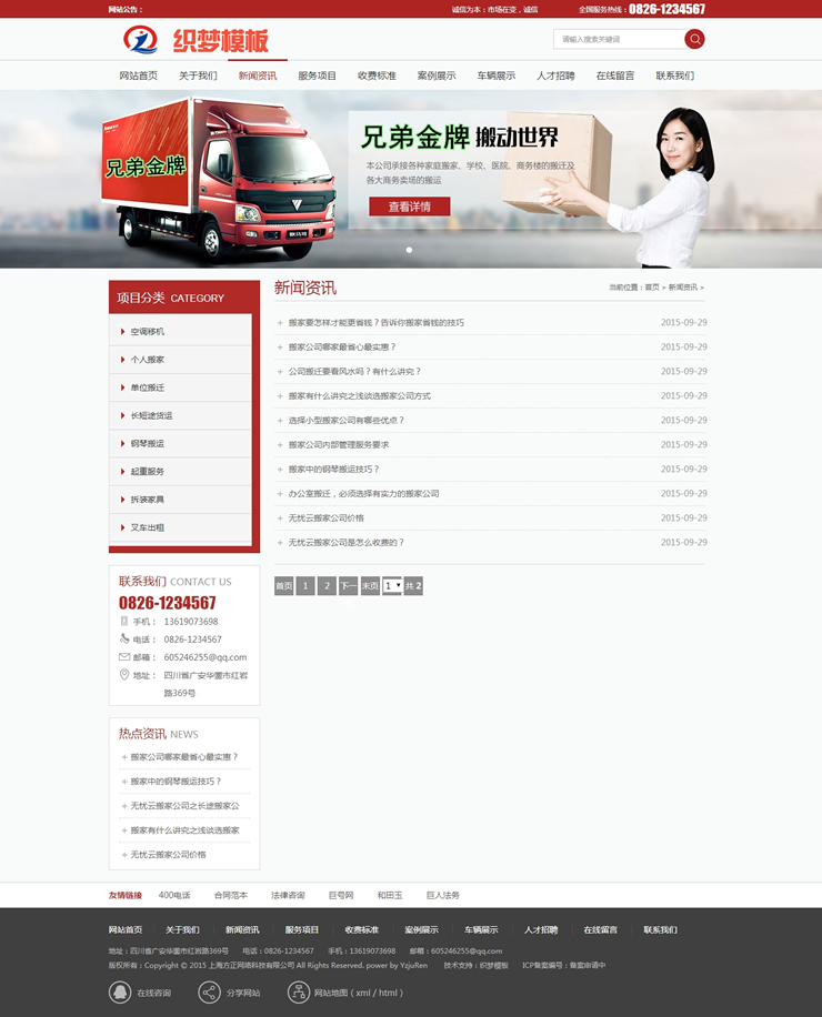 红色家政服务空调搬家类网址织梦模板-DeDecms(织梦)模板