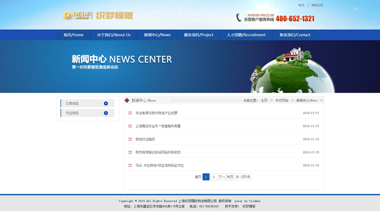 中英版蓝色大气物流公司企业网站整站织梦模板-DeDecms(织梦)模板