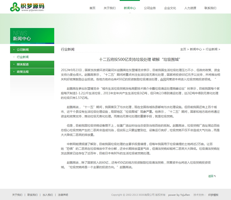 工业环保工程类企业网站织梦模板(带手机端)-DeDecms(织梦)模板