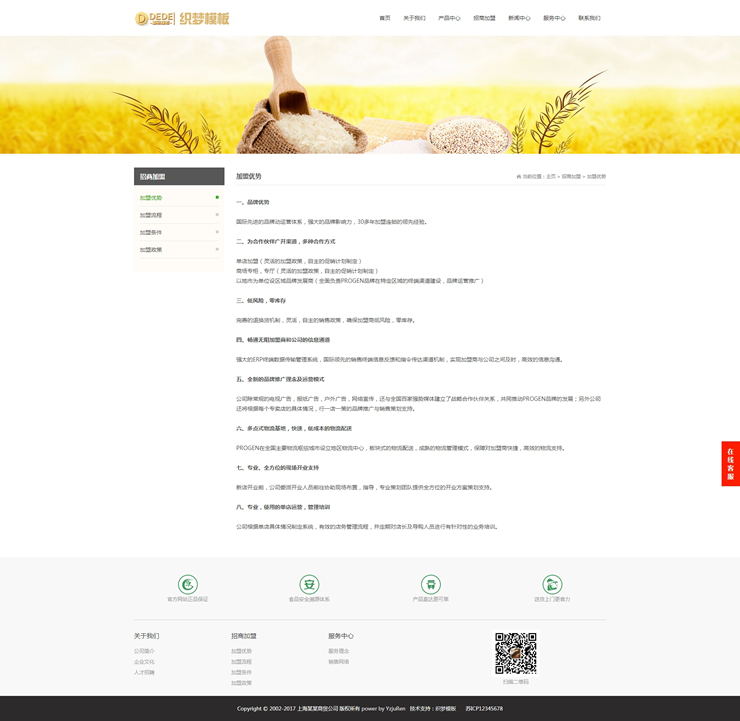 响应式农产品网站源码大谷物米食品类响应式织-DeDecms(织梦)模板