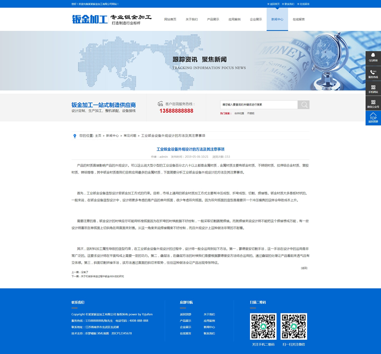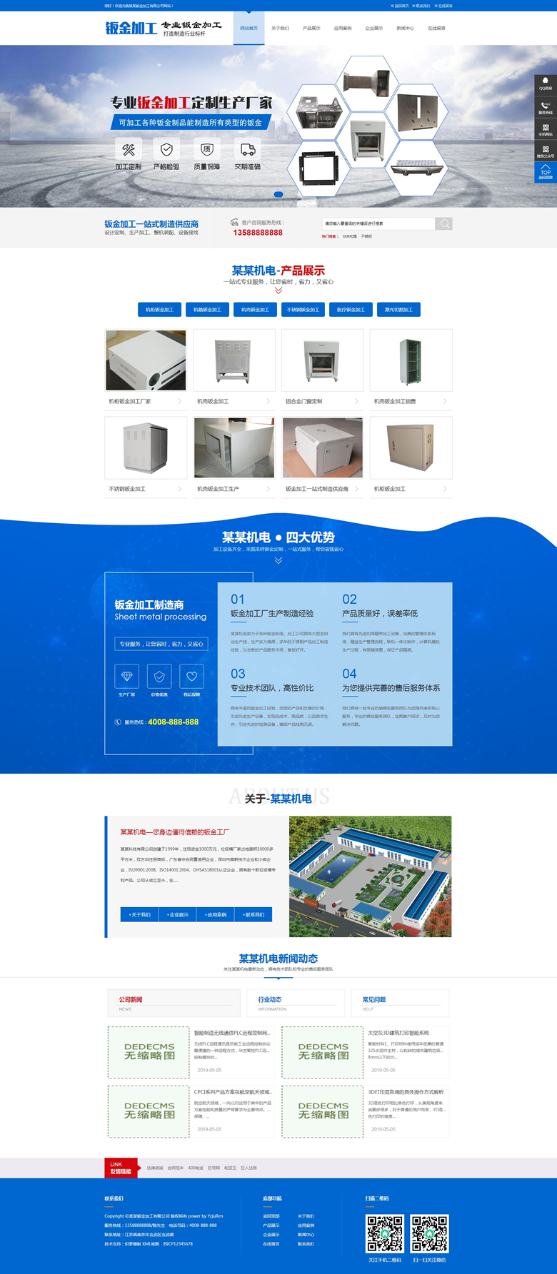 钣金加工设备类网站织梦模板蓝色五金机电设备网站源码下载-DeDecms(织梦)模板
