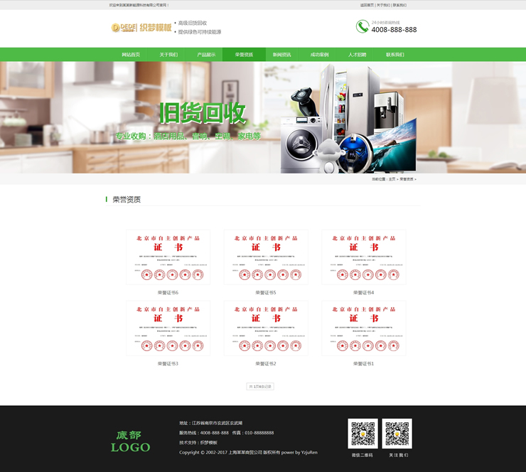 废品空调电视旧货回收类织梦模板资源废品回收-DeDecms(织梦)模板