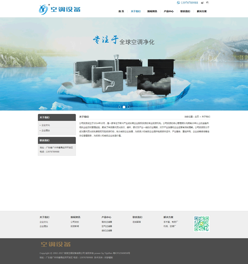 空调空气过滤设备织梦模板(带手机端)-DeDecms(织梦)模板