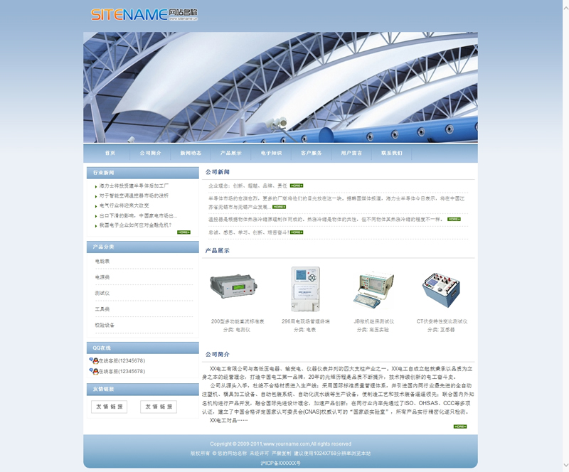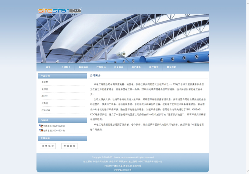 淡蓝色轻工业产品电子电器产品公司建站模板-建站之星模板