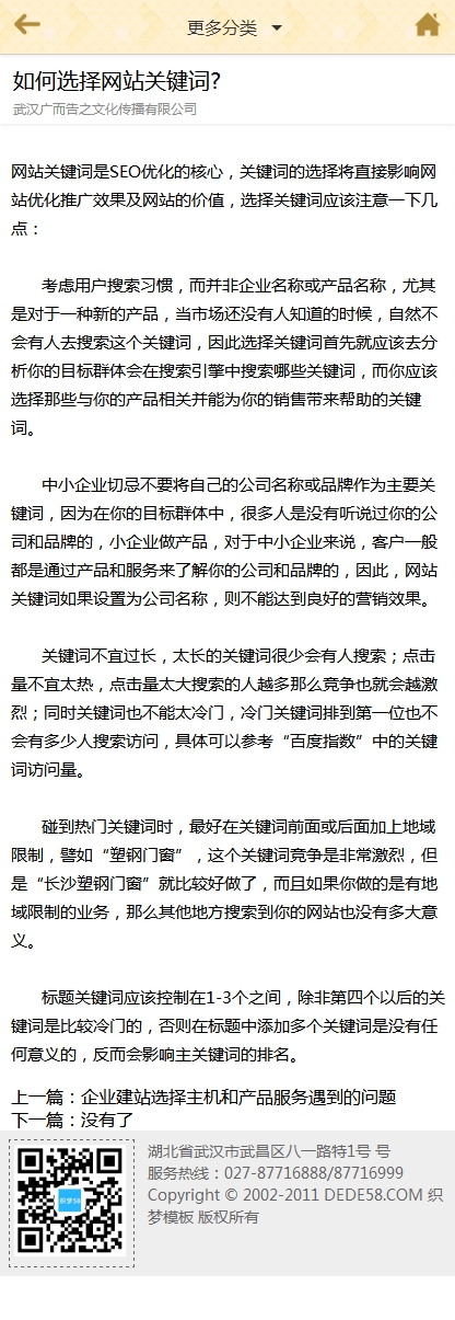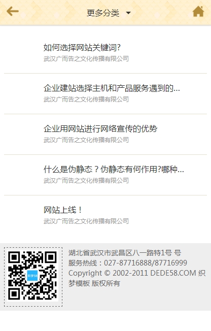 黄色织梦企业通用手机模板-DeDecms(织梦)模板