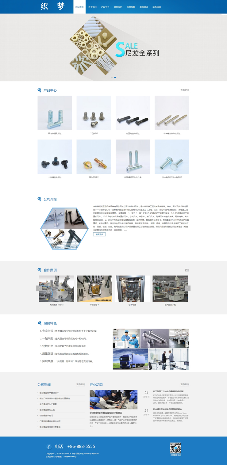 蓝色响应式机械螺丝设备行业网站织梦模板(自适-DeDecms(织梦)模板