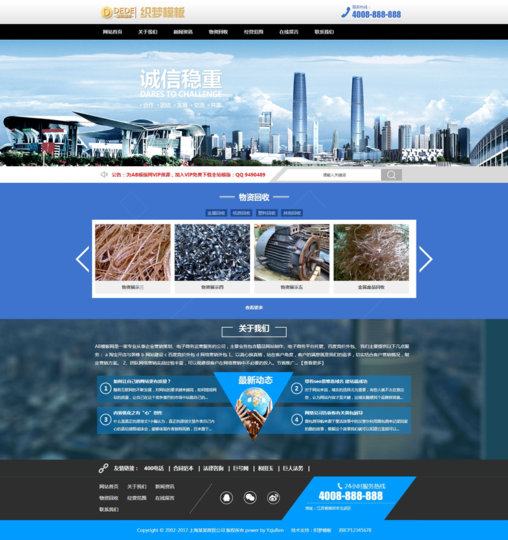 废品回收站织梦源码 物资回收企业网站模板(带-DeDecms(织梦)模板