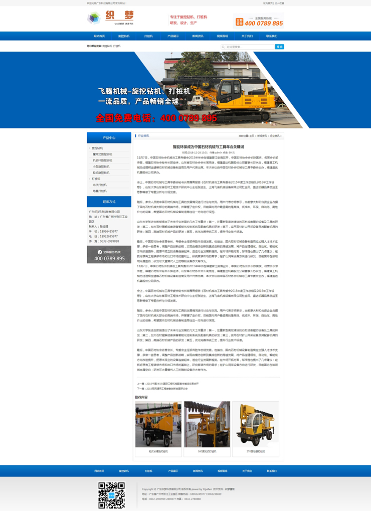 蓝色机械挖掘机钻机类产品企业网站织梦模板-DeDecms(织梦)模板