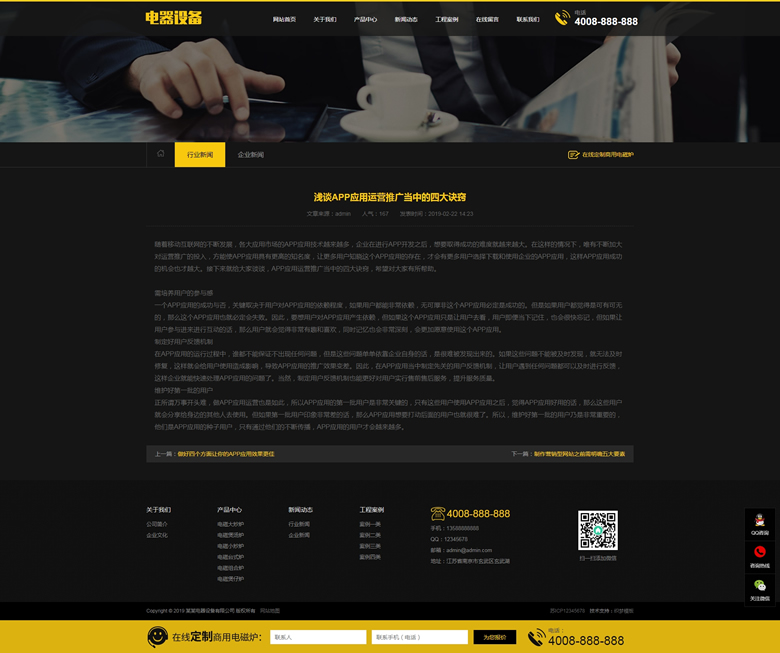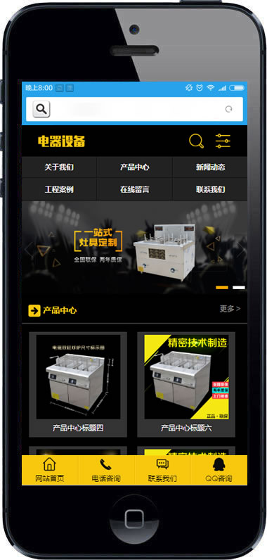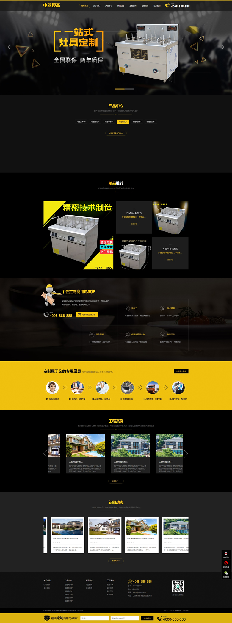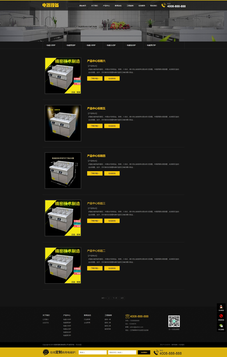 厨房用具用品设备类网站织梦模板黄黑色厨房电器设备网站源码-DeDecms(织梦)模板