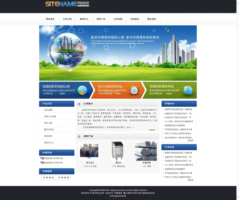 资源回收公司环保创新企业建站通用模板-建站之星模板