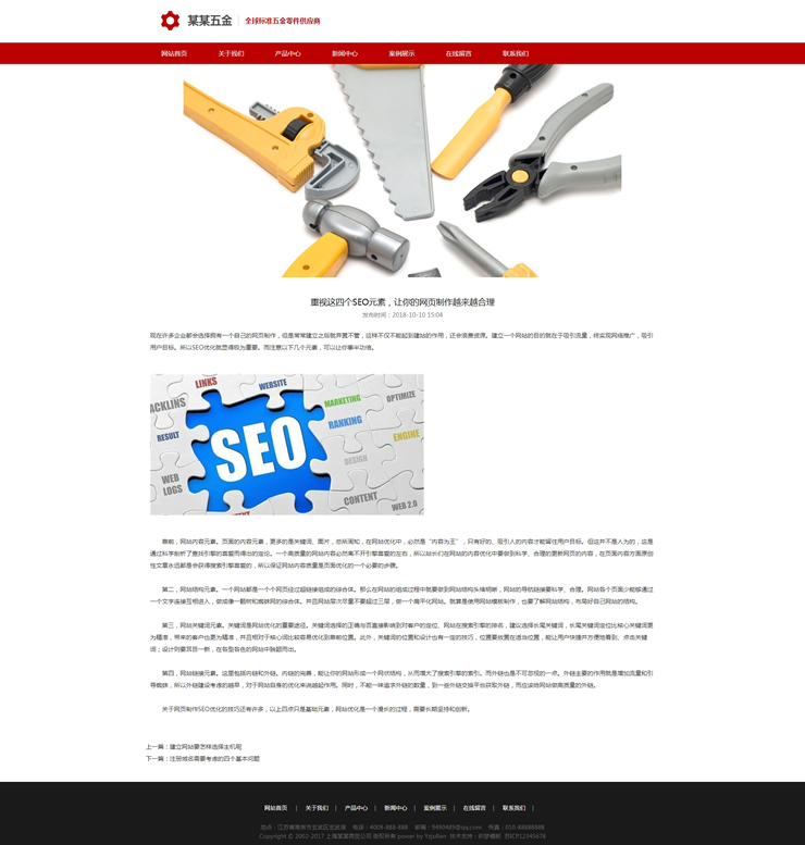 响应式五金冲压类织梦模板HTML5红色五金工具网站-DeDecms(织梦)模板