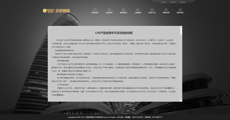 黑色宽屏LED照明设备织梦源码 LED灯具照明企业网-DeDecms(织梦)模板