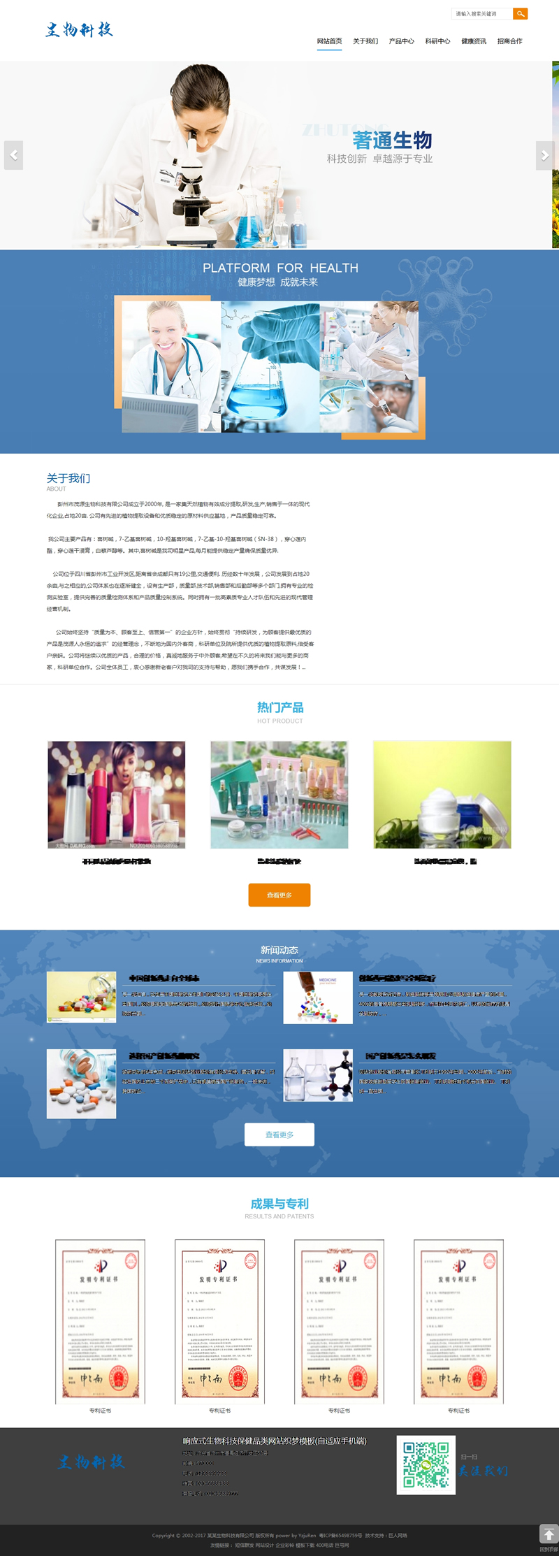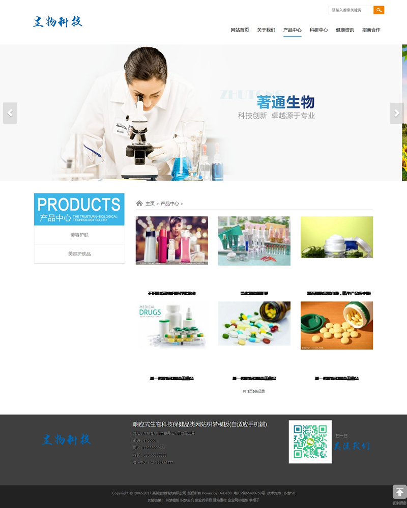 响应式生物科技保健品类网站模板(自适应手机端-DeDecms(织梦)模板