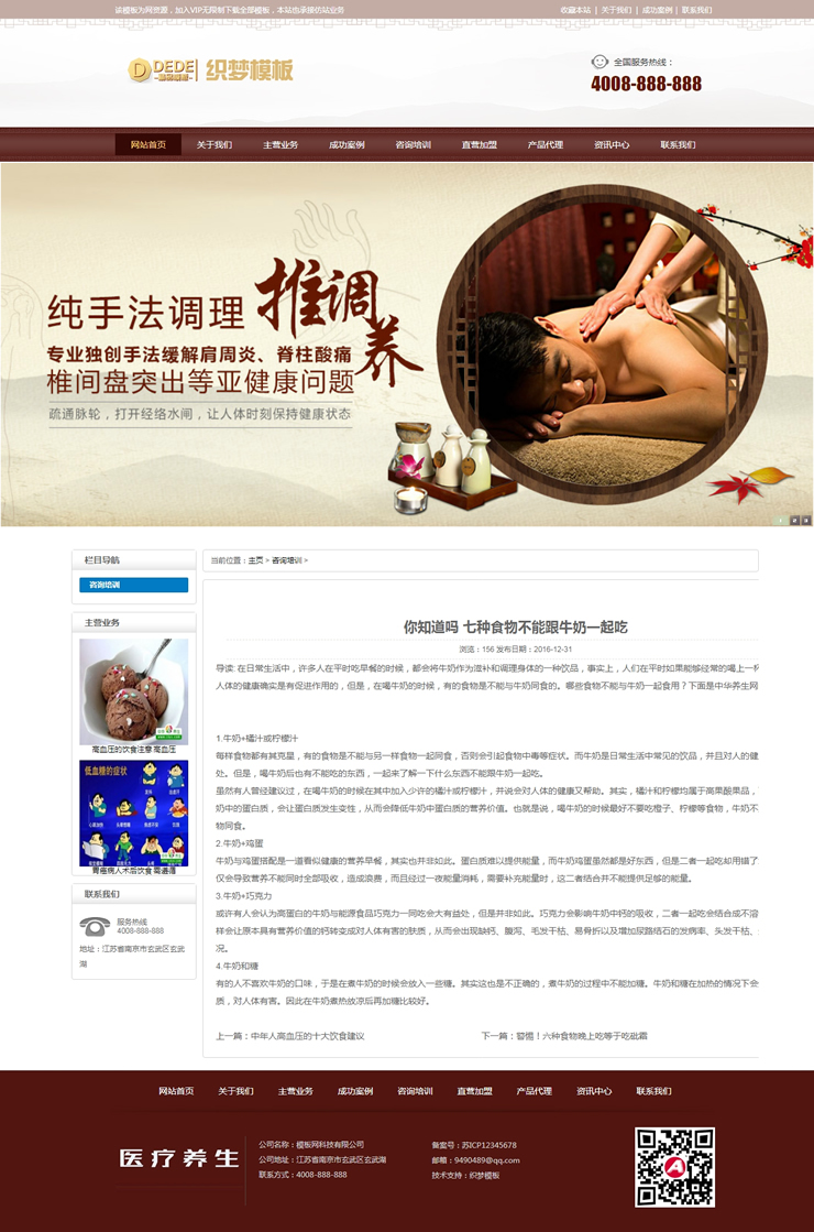 养生会所连锁机构网站织梦源码医疗养生资讯类-DeDecms(织梦)模板