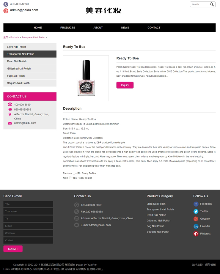响应式外贸化妆美容产品网站织梦模板(自适应手-DeDecms(织梦)模板
