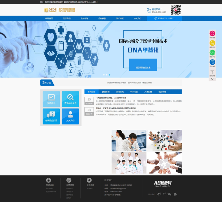 蓝色医疗网站织梦源码健康医疗检测机构类企业-DeDecms(织梦)模板